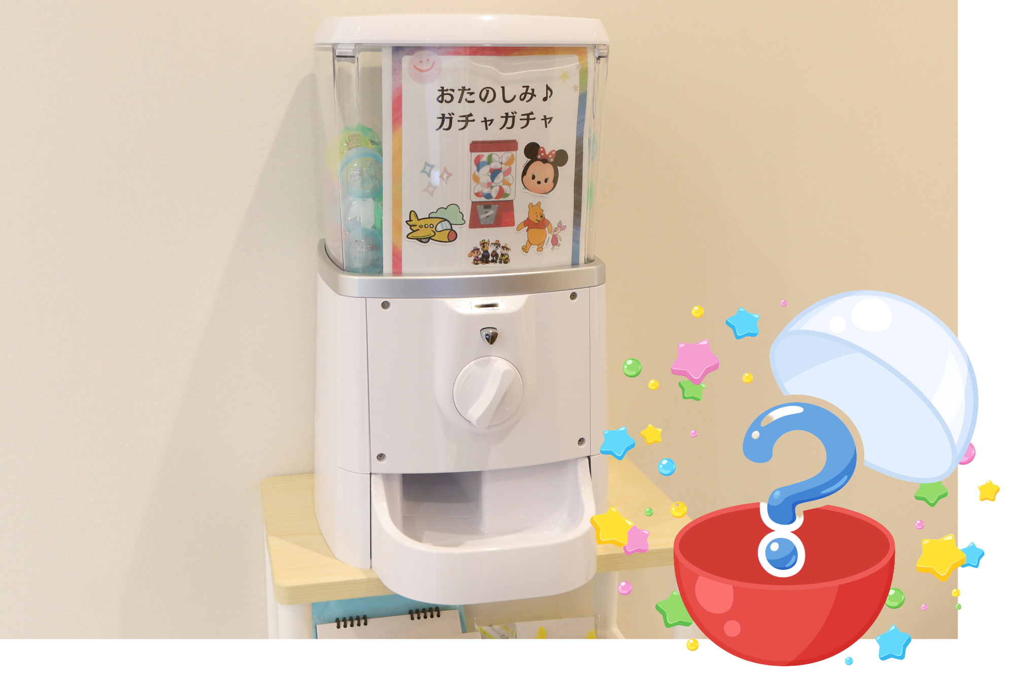 治療を最後までがんばったお子さまへのお楽しみとして、治療後にはカプセルトイのごほうびをご用意しています。