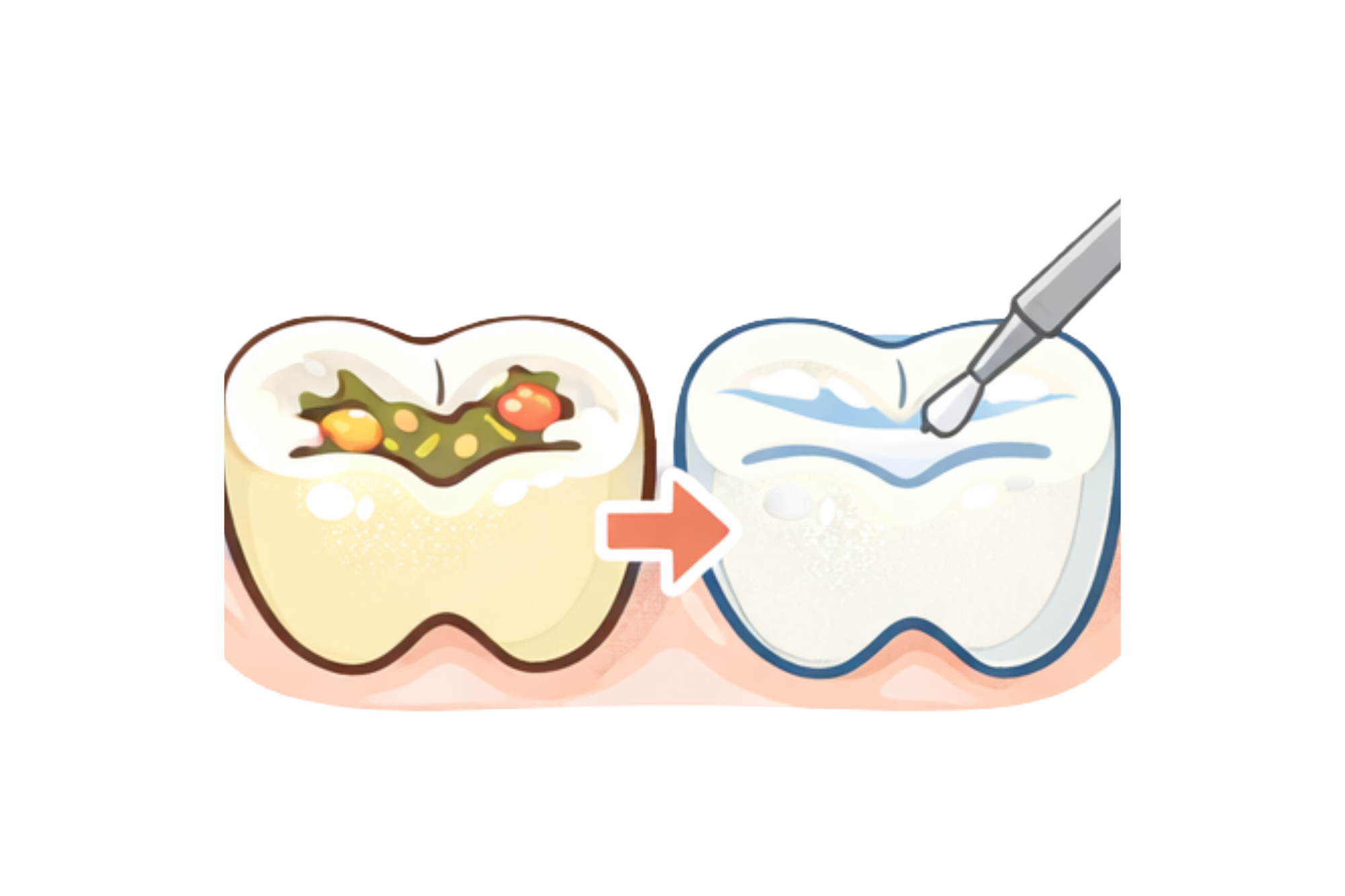 乳歯や生えたばかりの永久歯は、歯の表面を守るエナメル質が大人の歯に比べて薄く、酸に弱い状態です。そのため、むし歯になると進行が早く、短期間で深く広がってしまうことがあります。