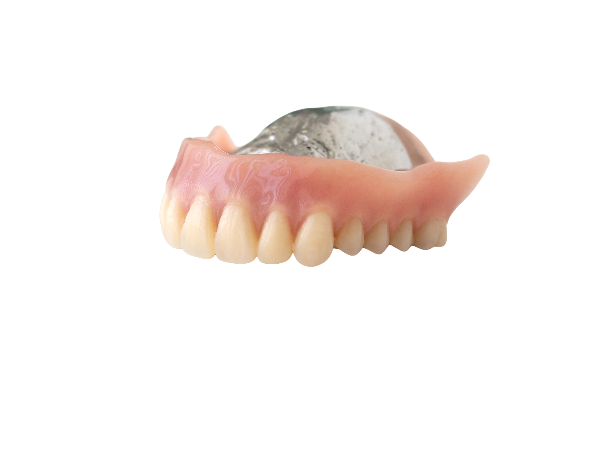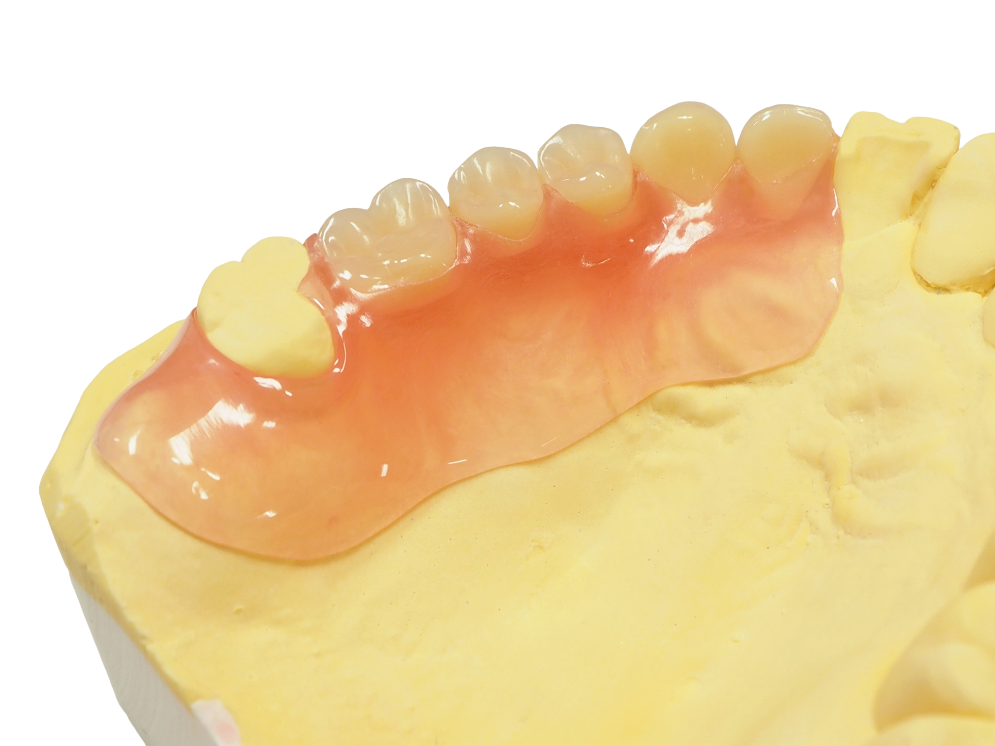 一定の基準に沿って作製されるため、使用できる素材や構造はあらかじめ定められており、歯ぐきに接する部分にはレジン(樹脂)、部分入れ歯の固定には金属の留め具が用いられます。
